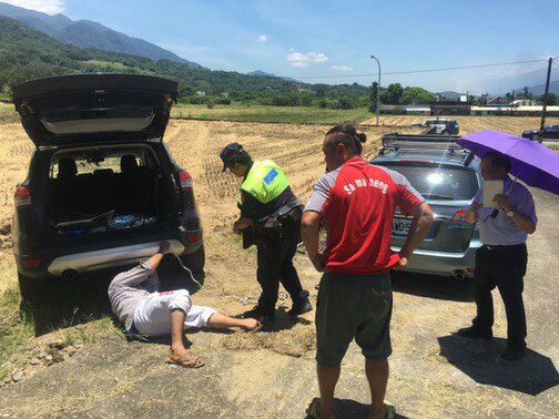 花蓮縣警察局玉里警分局竹田派出所副所長田新光、警員蘇俊豪日前執行巡邏勤務時,接獲葉姓民眾葉報案,稱駕駛汽車行駛於富里鄉新興村產業道路,不慎滑落農田無法脫困,田、蘇兩位員警接獲通報後立即駕駛巡邏車馳往現場救援,解決了葉男的困擾。
