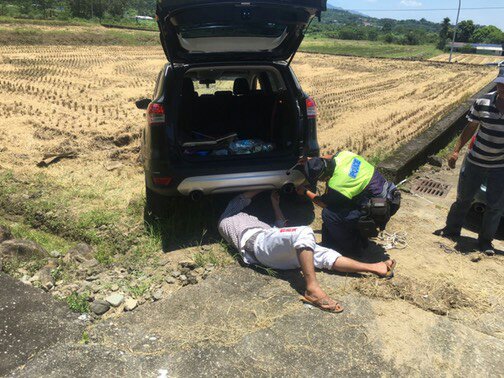 田副所長等兩位員警到場後,嘗試以推車方式將汽車脫困未果,在檢查汽車無明顯機械故障後,立即協助聯繫修車廠到場救援,以拖車將汽車拖回路面順利脫困,在炎炎烈日下解決了葉男的困境。葉姓駕駛事後非常感謝兩位員警的協助,並感念員警於夏日的艷陽下仍然發揮服務品質及熱心協助民眾的態度,深感敬佩及感謝。