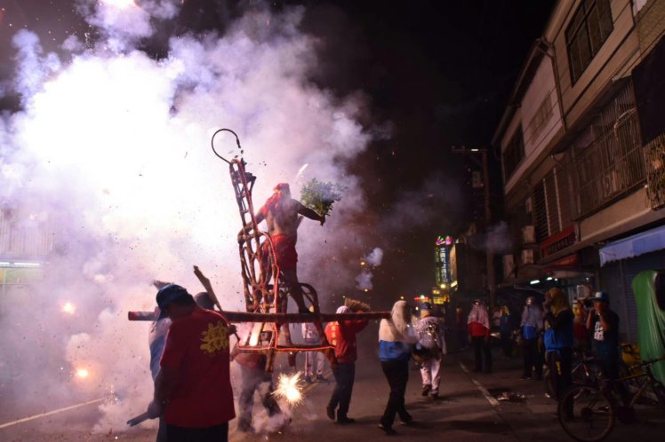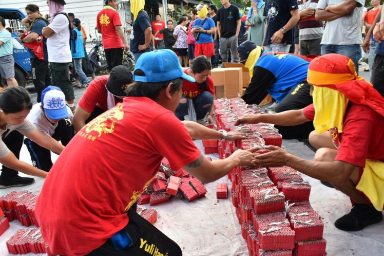 花蓮縣玉里鎮金闕堂寒單爺協會於昨(8)日下午14時舉辦「璞石耀武炮炸寒單迎財神文化祭亅活動,吸引國内外民眾與遊客驚訝圍觀,大家競相目睹寒單(邯鄲)爺被鞭炮轟炸的特殊熱鬧場面,現場鞭炮聲不絕於耳響徹雲霄,炮硝煙霧瀰漫,許多人努力向人群中卡位,希望能一睹寒單爺精彩的表演並與其合照。