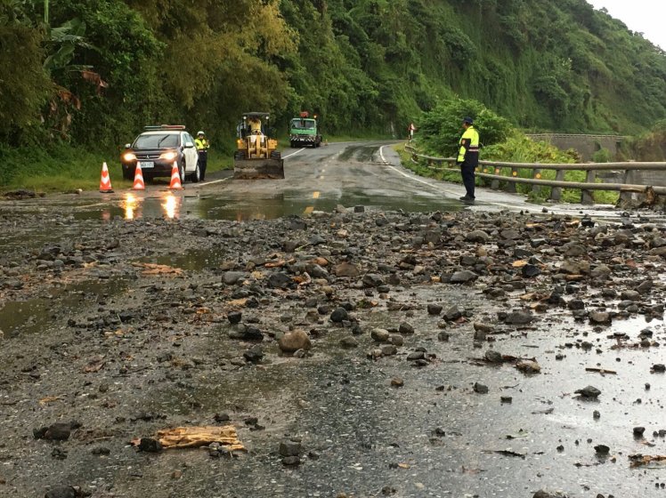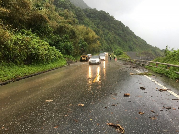 提醒用路人,目前持續下雨,邊坡土石鬆軟,行經此路段減速慢行注意安全,天侯不佳,盡量避免進出海岸或山區道路為宜。