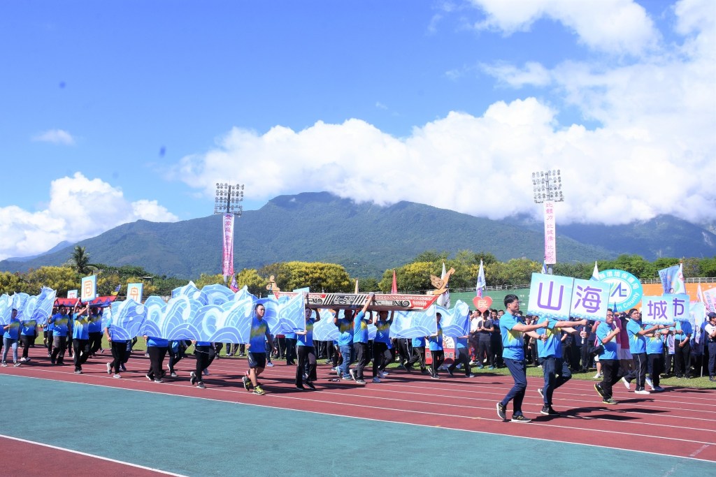 花蓮市長魏嘉賢偕同主任秘書翁美華帶領市公所團隊參與這場運動賽事,在創意進場中的三艘獨木舟,是市公所今年四月辦理「Riyar洄瀾海」文化教室時,邀請大沐老師溫志榮指導製作十艘獨木舟,並在七月的部落一起與海共舞的活動裡舉辦獨木舟下水典禮,當時有六艘獨木舟學員們從美崙溪一路划向出海口,獨木舟在美麗的河流迂迴前進的特寫,讓不少人驚艷,今天現身在縣立田徑場,更成為許多人爭相拍照的焦點。