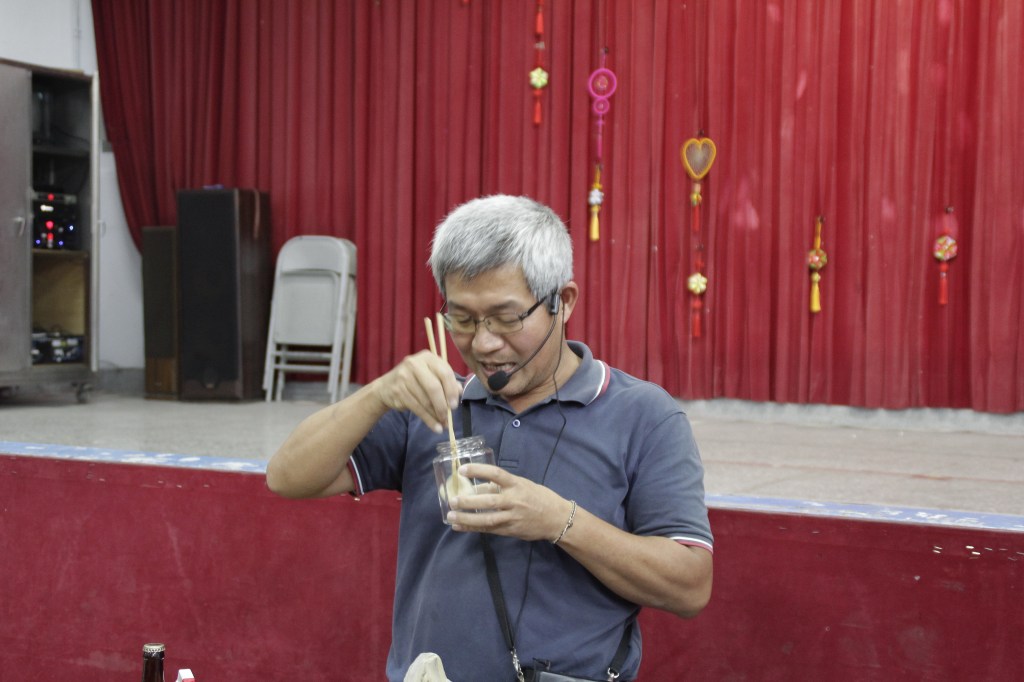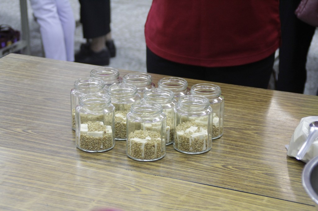 羅山社區發展協會理事長林益誠首先介紹由自種的非基改有機黃豆所製成的豆腐, 林理事長每個步驟細心解說,豆腐加上米麴、適當比例的糖酒液醃製,讓學員們一邊聽一邊做。學員們雖然是第一次做,但每個人都展現身為婦女的矯捷動作,讓看似簡單卻「每尬」很多的豆腐乳不一會兒即完成。參與製作的學員表示,豆腐乳是很好吃的一項醃製物,以往想吃只能到店家購買,現在能夠自己動手做,再等待三個月就可以吃到,真的非常開心又期待。