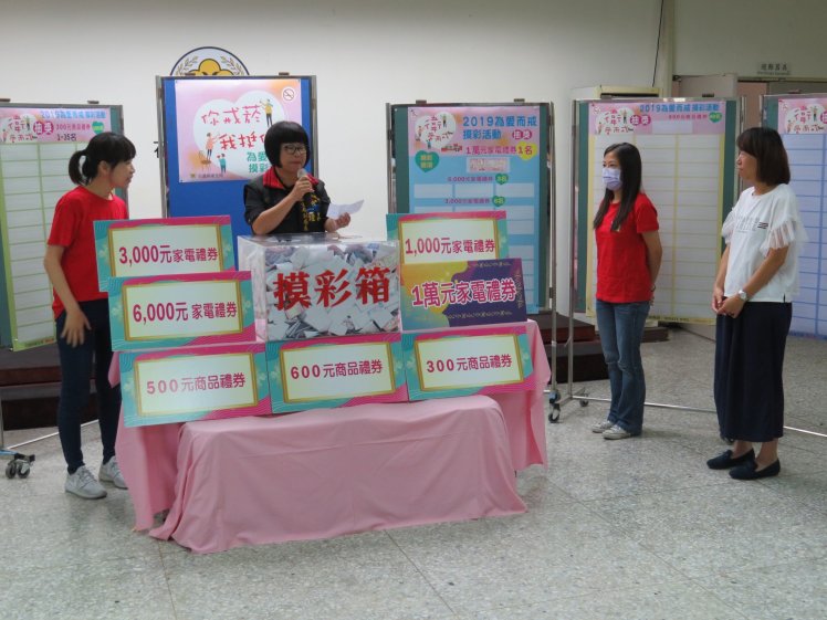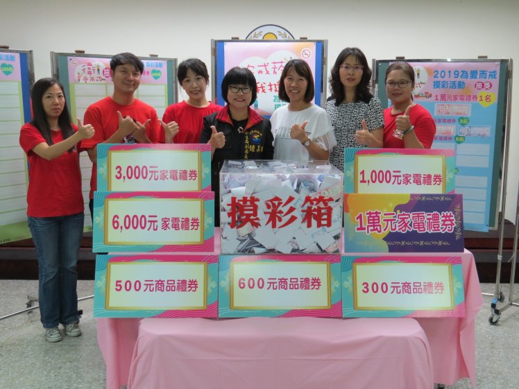 花蓮縣衛生局為守護鄉親健康能遠離菸品危害,結合轄內64家合約醫事機構提供便利與可近性二代門診戒菸與衛教服務;提高民眾門診戒菸服務使用率,特於10月28日辦理108年度「為愛而戒」戒菸摸彩活動,總計3,813人次參與門診戒菸及摸彩活動,最大獎項家電禮券1萬元由壽豐鄉民眾林先生前往衛生所門診就醫獨得;另由富里鄉衛生所張女士、門諾醫院張先生、鍾先生分別獲得家電禮券各6,000元,另有家電禮券3,000元6名及家電禮券1,000元12名,商品提貨券300元至600元總計202項等多樣好禮獎項。