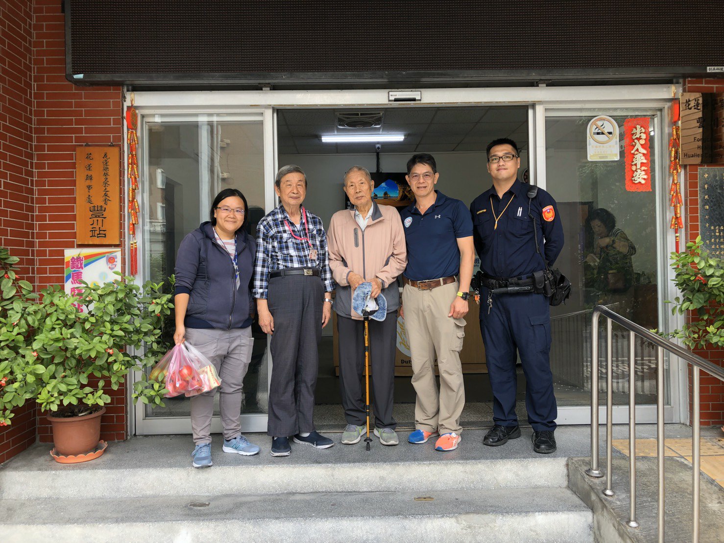花蓮分局豐川派出所所長彭舜熙獲知後,立即熱心地協助尋覓高齡89歲的蔡如宏老先生,員警們也相當積極,挨家挨戶尋訪,終於找到蔡伯伯,大家都感到相當振奮。