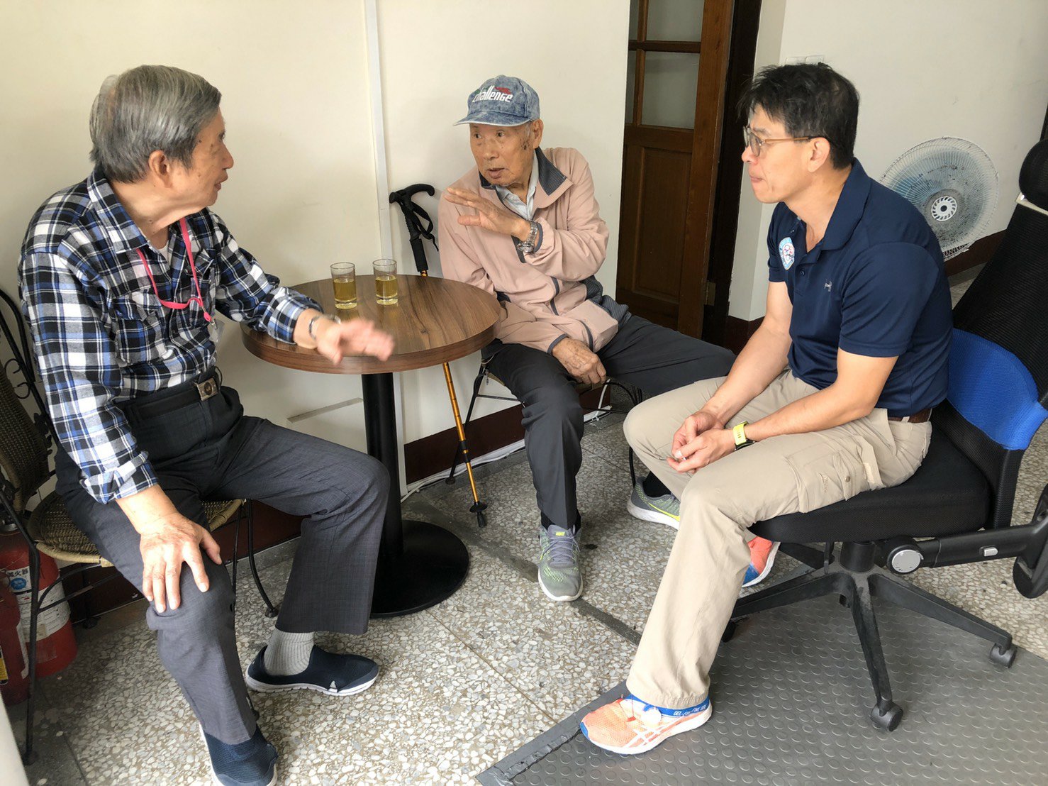 曾廣和、蔡如宏老先生昨日聽到好消息,雙方都興奮地「失眠」了,迫不及待與老友重逢。今日一早,在彭舜熙所長、花蓮榮家社工人員吳佑萱的陪同下直奔豐川派出所,兩人一見面就認出彼此,也解決曾伯伯來花蓮一個餘月來心中的牽掛。