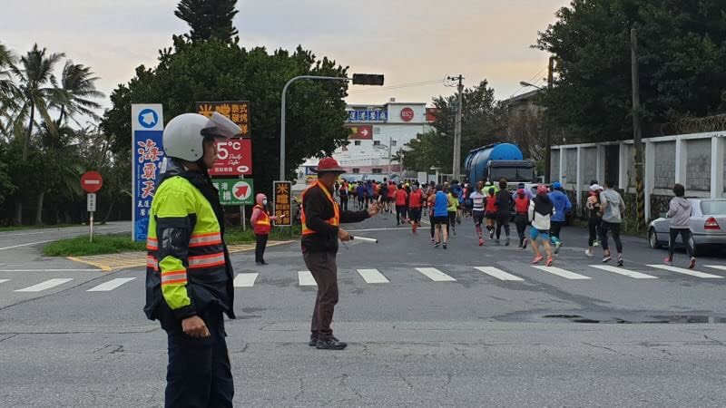 花蓮警分局表示,為了這次馬拉松路跑活動能順利進行,花蓮警分局交通組在一個月前就開始進行各種交通管制的準備與交通疏導路線規劃,今日馬拉松比賽為了維護路跑活動中的人車管制安全,員警凌晨4時30分集合開始準備各項前置作業,如設置改道標示、搬運爆閃燈、擺放交通錐等管制設施,花警們在凌晨天未亮不影響用路人的情況下,用最短的時間將場地周邊交通動線布設完成。希望提供安全的環境,在活動會場及路跑沿線各路口,都可以看到花蓮警分局同仁認真執行交通管制的身影,讓大家享受路跑的樂趣同時可以感到安心,盡情的發揮跑者實力,很多民眾及選手更對花警堅守崗位的盡職辛勞留下深刻印象。