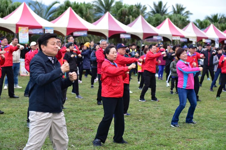 徐榛蔚指出,2020年元旦,溫暖的曙光灑在曼波園區裡,我們在這白色鐘塔藝術裝置裡敲鐘祈福,敲鐘三聲代表著「自然、自在與自由」、被大山大海包圍還有浪漫的霧雕藝術及搭配在地音樂家二重奏演出,真的是很幸福,今天也是戰備坑道首次對外開放,陸陸續續會加強路線引導系統,讓大家更方便遊覽,歡迎大家來曼波園區迎新年,大手牽小手一睹四八高地戰備坑道的新面貌。