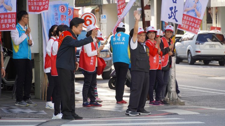 今天上午七時半和下午五點多,肩披6號紅色背帶的傅崐萁,站在街口向上下班、的鄉親們請安拜票,十多位支持者高舉揮舞韓國瑜、張善政和傅崐萁的旗幟,籲請花蓮鄉親集中所有力量,票投2號韓國瑜、張善政,和國會戰將6號傅崐萁當選。 傅崐萁說,感謝花蓮鄉親大團結,十年前我們共同締造蘇花改,如今已在一月六日完工通車了。請再給崐萁一次機會,帶著32萬鄉親的祝福,進入立法院打拚,為花蓮後代子孫打通中橫國道六號,花蓮直通臺中,建設中台灣東西共同生活圈。