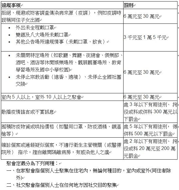 依據傳染病防治法規定,有下列違規將有罰則,籲請縣民共同配合