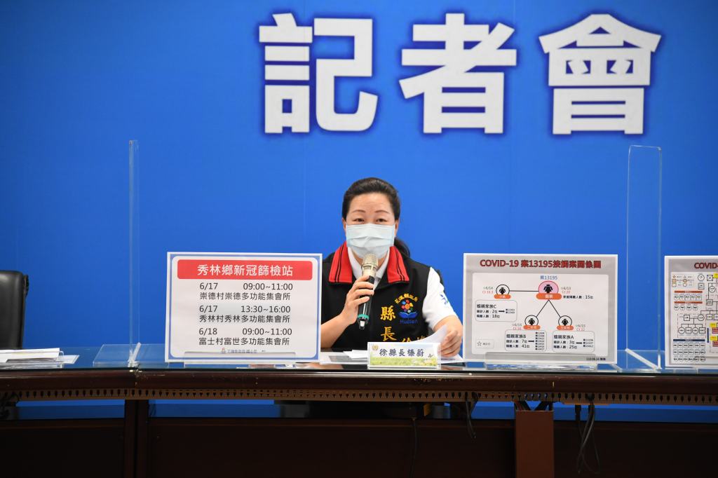 花蓮今(16)日新增8例確診個案,皆為秀林鄉崇德村家族傳染,花蓮縣政府下午召開記者會,縣長徐榛蔚指示衛生局針對秀林鄉實施普篩。有鑑於花蓮縣老年人口數多,徐縣長呼籲中央政府增加疫苗配給,提高長者的施打率,更再次呼籲鄉親暫停不必要群聚,避免新冠肺炎傳染再度擴散。