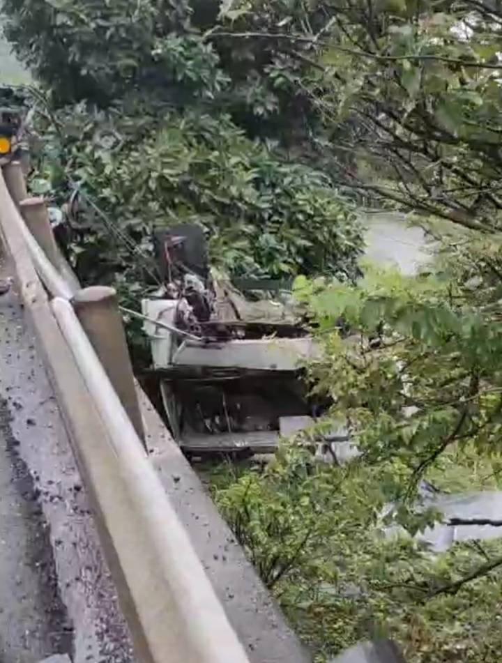 此件事故其中一輛曳引車頭受損嚴重,另一輛曳引車車頭則是掉落邊坡下,因此路況排除可能要一段時間,建議用路人耐心等待或是改道行駛。