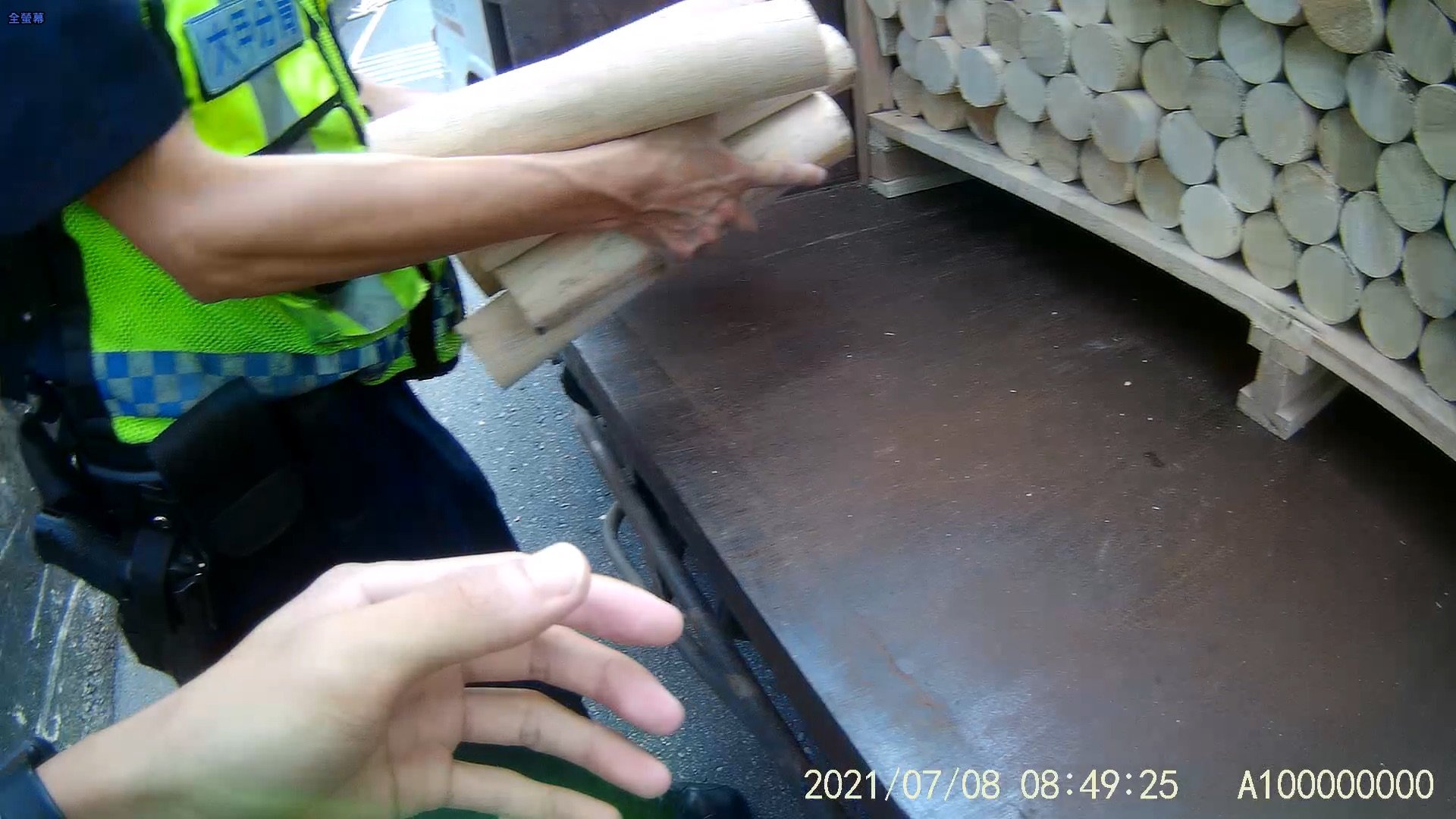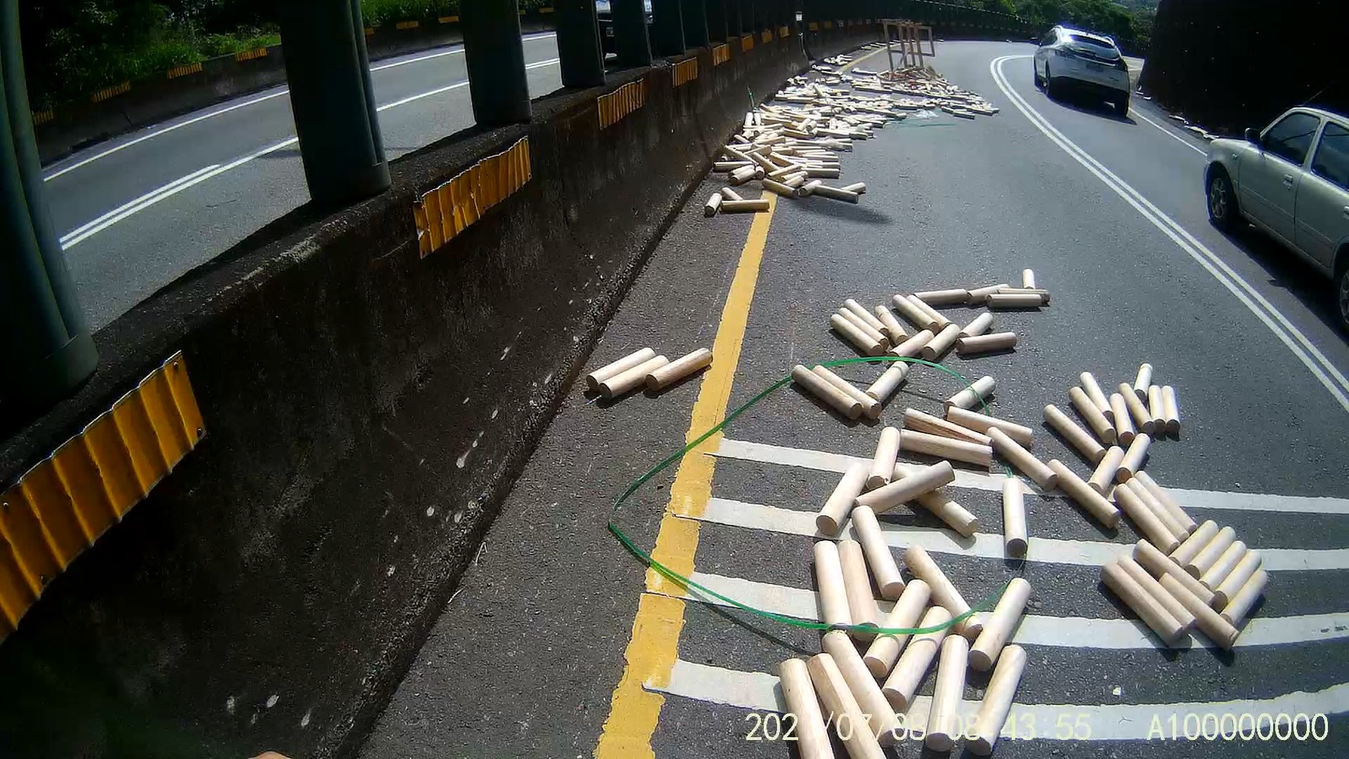 現場經警方積極協助撿拾障礙物,總算以最短的時間將散落一地數百支橡膠木圓柱搬離,才讓交通恢復順暢,羅姓駕駛頻頻點頭向警方表達感謝也對自己的一時疏忽影響用路人行車安全感到抱歉。