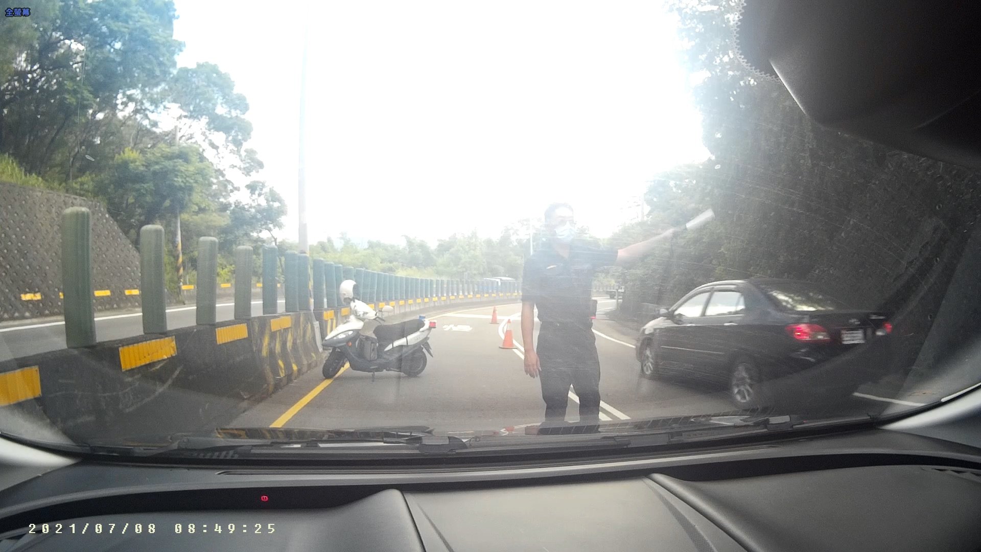 臺中市政府警察局大甲分局義里派出所員警紀志忠於7月8日執行勤務,巡經后里區三豐路四段風鼓崎時,發現一輛大貨車裝載約四百支橡膠木圓柱,在陡坡彎道轉彎時,貨物不慎散落整個車道影響行車安全,員警見狀立即通報巡邏警力到場支援指揮疏處,緊急清出一車道供其他車輛通行,並將巡邏車警示燈打開輔以擺設交通錐疏導管制車流,待後續支援警力到場協助後始順利排除障礙物。