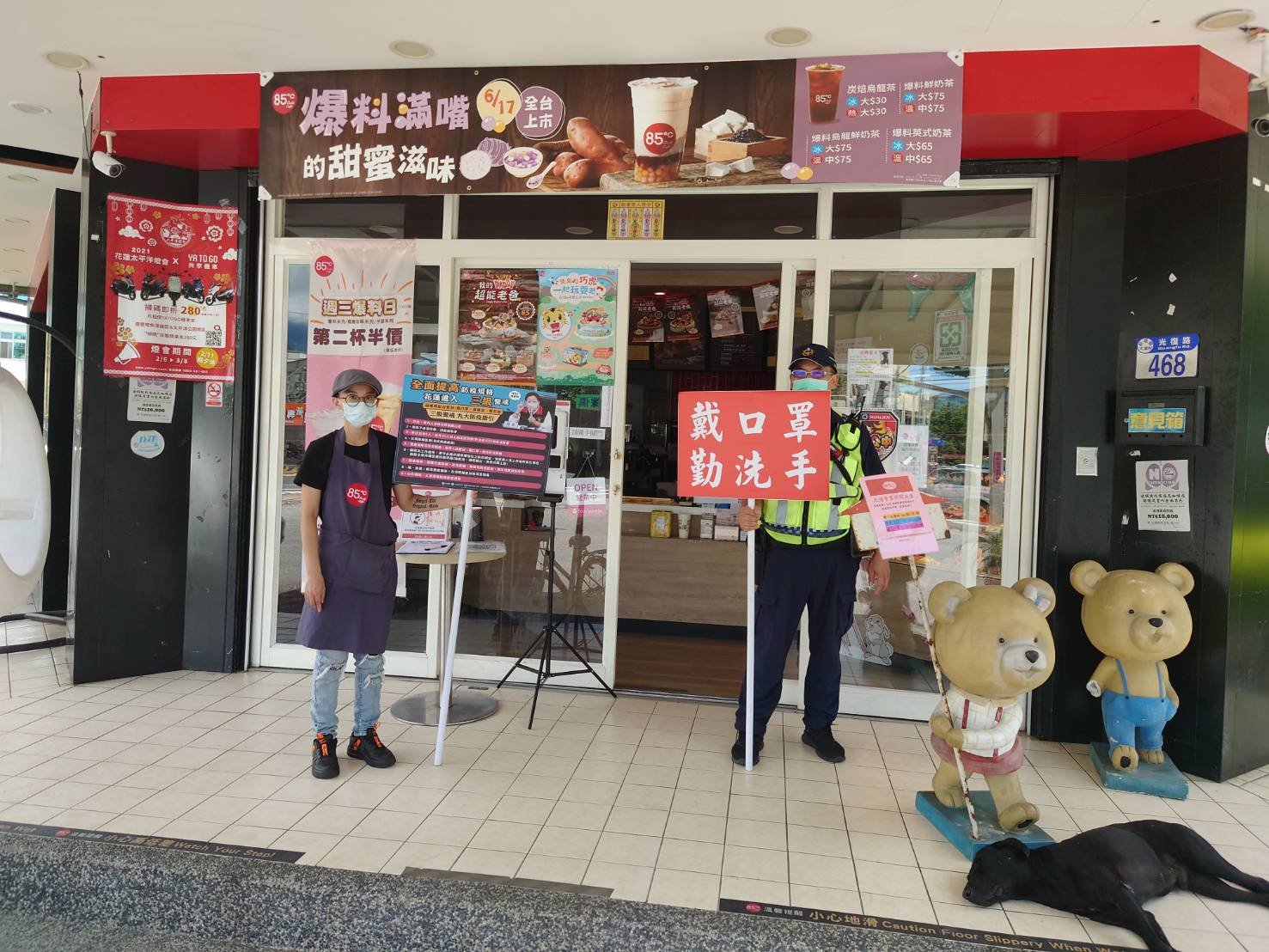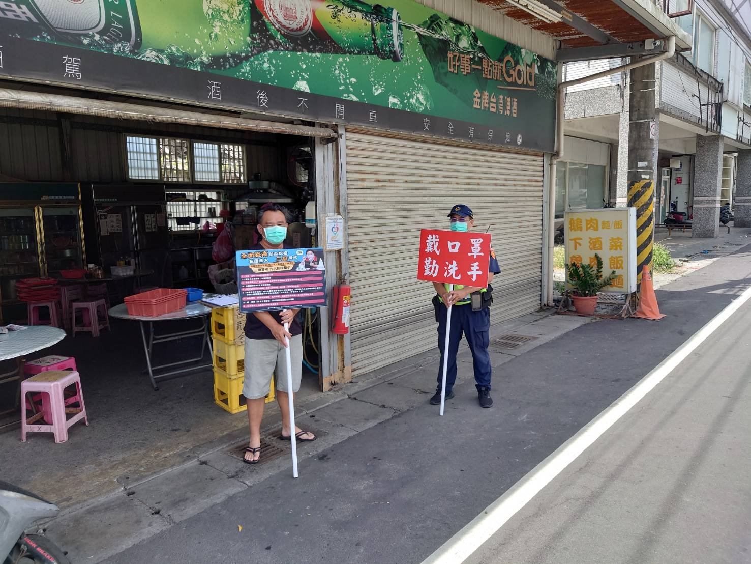 新城分局前往轄區店家實施宣導,向大家告知縣政府發布的全面禁止的防疫政策,請業者依照規定一律提供外帶,拒絕內用,若不遵守縣政府所公告的禁止內用規定,將依傳染病防制法第70條進行查處,請大家遵守相關規定一同對抗疫情,切勿以身試法,以防止疫情繼續延燒。