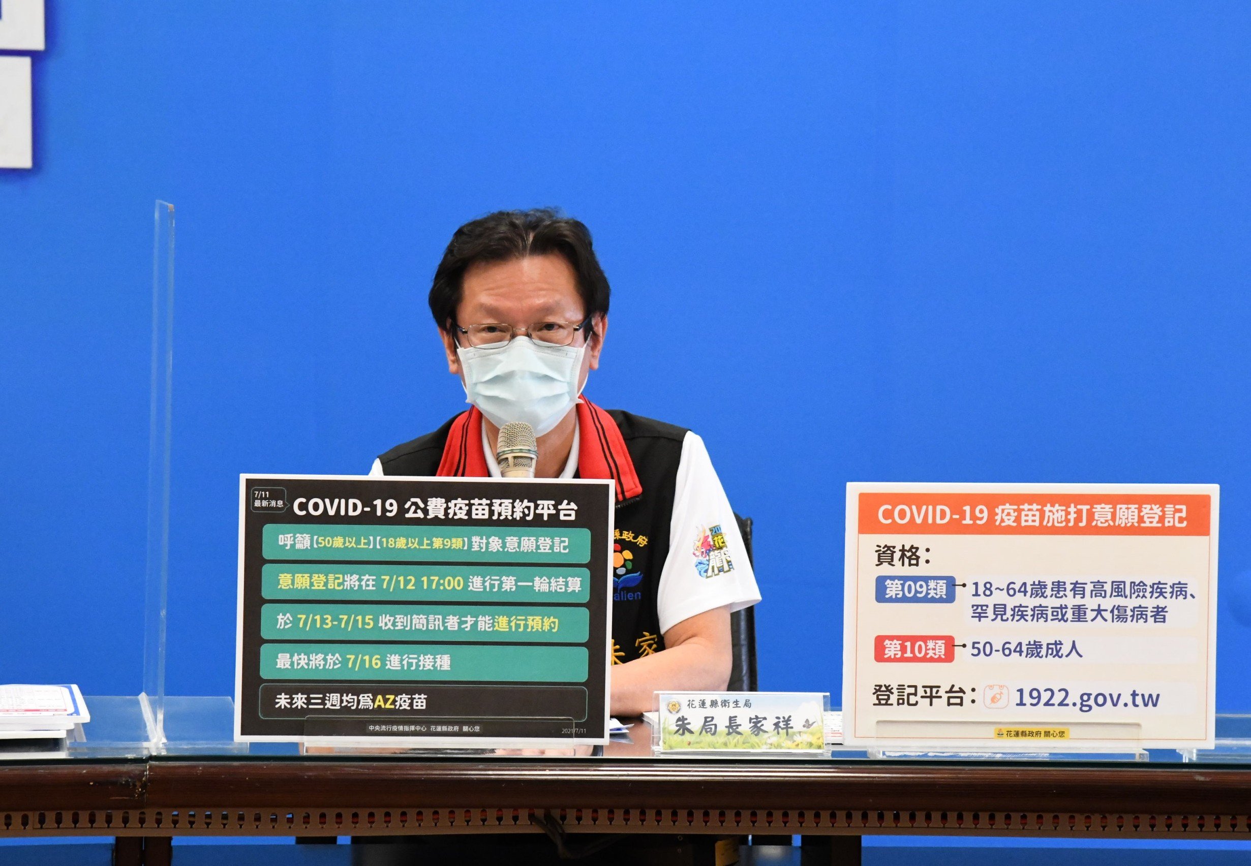 花蓮縣連續23日維持零確診,縣長徐榛蔚、秘書長張逸華、衛生局長朱家祥昨(11)日召開防疫記者會。徐縣長表示,花蓮縣長者莫德納疫苗7月14日各鄉鎮市皆有名額,自今(12)日起亦開放電話預約,籲請鄉親踴躍上網或電話預約登記,提升花蓮疫苗接種覆蓋率。
