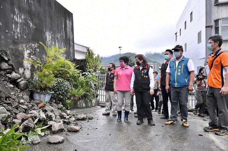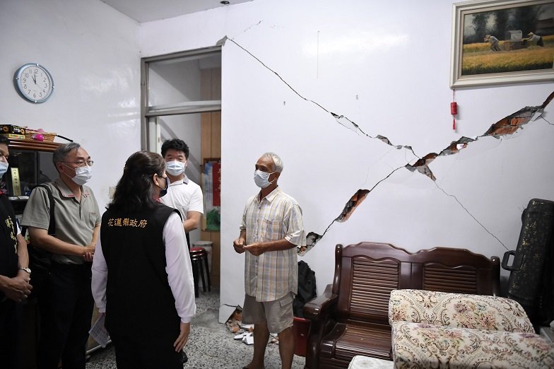 花蓮縣南區富里鄉昨(6)日晚間發生連續9起有感地震,位於池上斷層帶上的富里村永安國宅社區9戶民宅及富里國小等受損嚴重,花蓮縣長徐榛蔚今(7)日率領縣府建設處長鄧子榆、社會處長陳加富及教育處代理處長饒忠等人南下,在富里鄉長陳榮聰陪同下勘災,並立即指示相關局處給予受災戶相對應的救災協助,幫助鄉親渡過難關。
