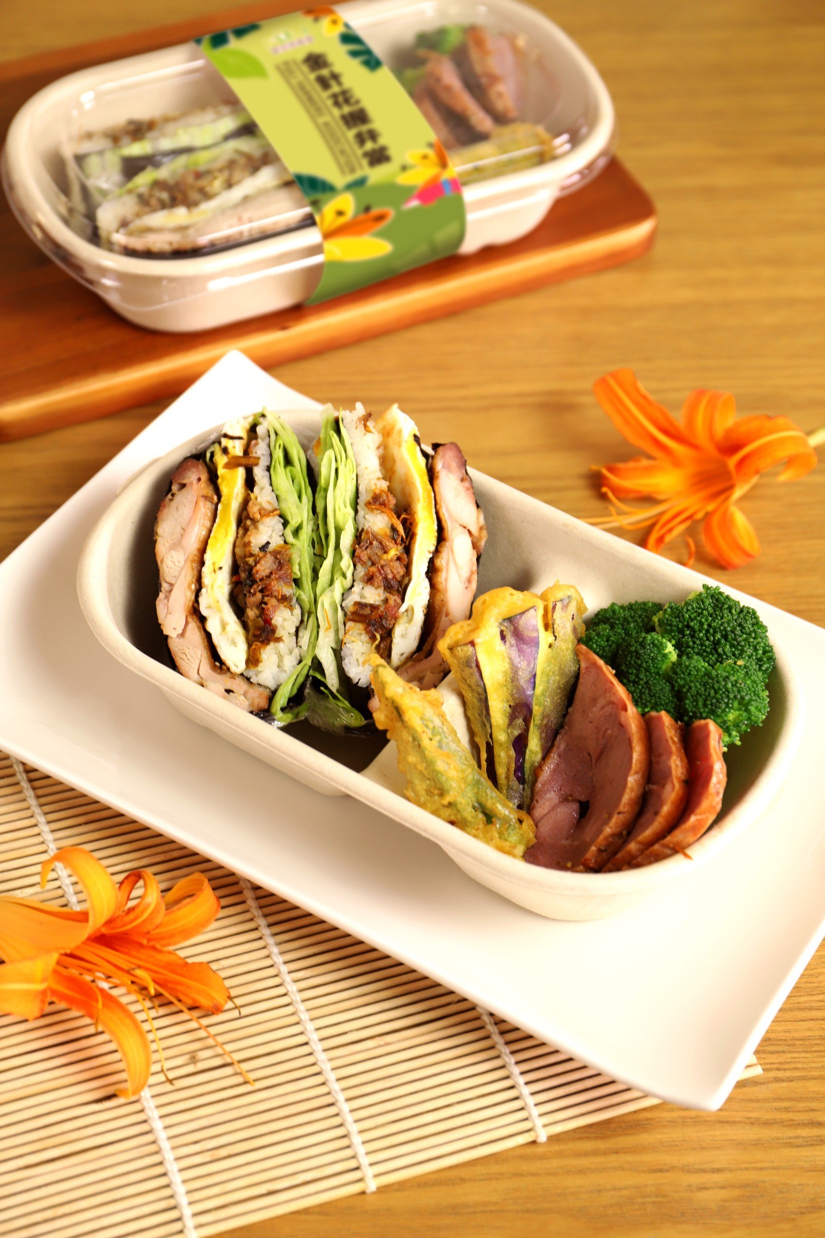 富里鄉農會配合金針花季推出多項限量美食,「金針花握便當」以打拋豬金針佐碳烤雞腿成為超澎湃握便當,搭配金針櫻桃鴨和炸時蔬,令人允指回味無窮。還有金針花鳳梨酥、金針魯肉餅等創意甜點,歡迎來店品嚐。