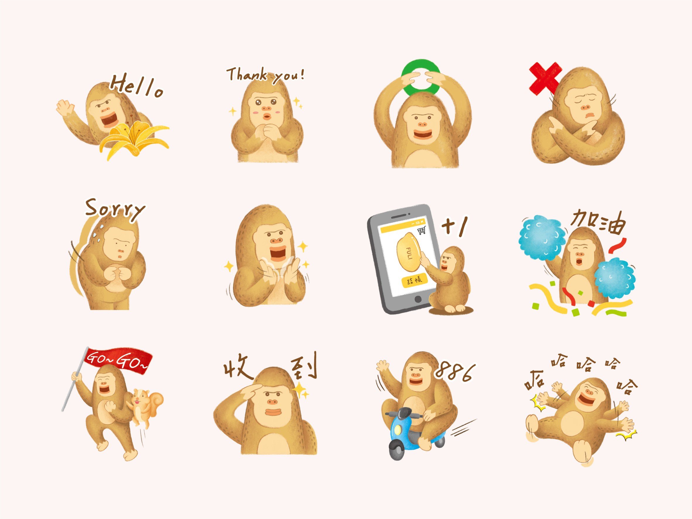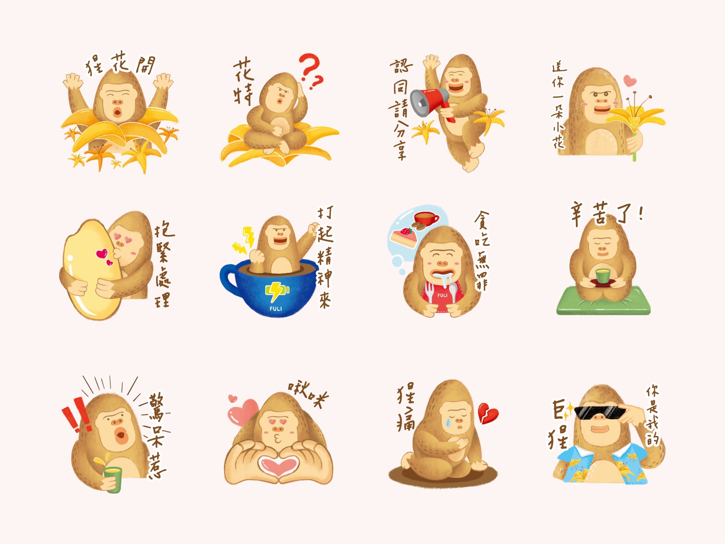 近年富里鄉農會的名產–大猩猩「福猩」即將推出LINE貼圖囉!不只在富里才能與您見面,更用可愛又逗趣的貼圖陪您共渡快樂每一天。
