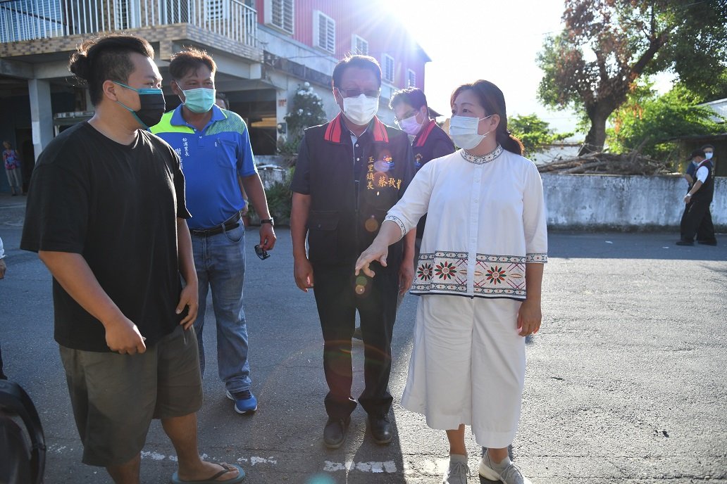 徐縣長在部落內與居民親切問候時,接到居民陳情希望能在聚會場所加強硬體設施,徐縣長當場允諾,隨即前往居民指示地點。了解居民的需求後,請玉里鎮長蔡秋龍針對居民要求強化硬體設施。