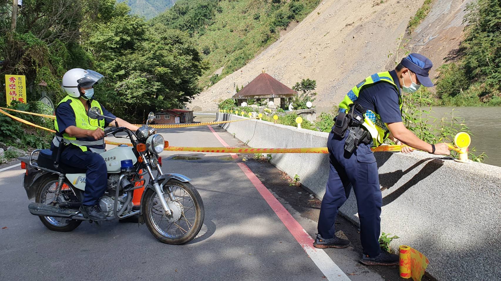 昨13日10時許,秀巒派出所員警,驚覺派出所後方緊鄰白石溪的邊坡發出異於尋常的落石滾動聲,向外觀察發現外環道路竹60線31.5k處上方大片土石正順著邊坡滑動至溪谷,阻塞出口逐漸形成堰塞湖。所長游世傑第一時間除立即向勤務指揮中心通報請求增派警力支援外,同時傾所有警力投入人群疏散與交通管制。首先協助秀巒國小師生快速疏散、並緊急通知鄰近河流住戶(3戶)立即離開住居地,避免土石崩落砸傷與河水暴漲衝擊,另一方面在落石崩塌路段兩端拉起封鎖線,派員現地交管,確保往來村民用路安全。
