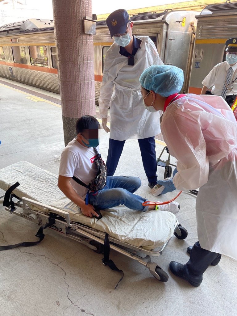 經警員陳哲煒與警員李旭銘著防疫裝備,於月台處等候該班列車抵達,經查該名男姓乘客姓張,年約30歲許,本欲搭車前往桃園,搭乘第221次列車北上,途中忽感身體不適及右側腹部疼痛、全身無力,故通知列車長請求協助,待列車到站後,由羅東所線上處理同仁,協同站員及消防救護護人員立即將張民送往聖母醫院急救及警方協助通知家人前往醫院照護張民。