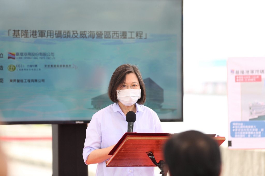 蔡總統表示,國防戰備和城市發展都能雙贏,基隆是郵輪中心曾獲頒亞洲最佳郵輪母港,軍港遷移後釋出的東岸碼頭空間經活化運用,可讓基隆繼續成為國際觀光交通重要樞紐。