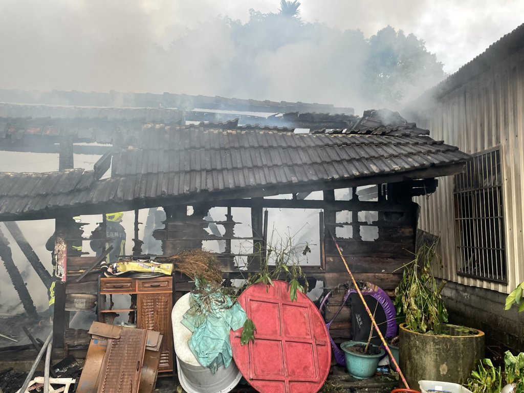 民眾報案 說一層木造建築物起火,。 警消立即趕到現場撲滅火勢。屋內(中正南路一段63號)疑有車輛燃燒,財損金額。無人員受困及傷