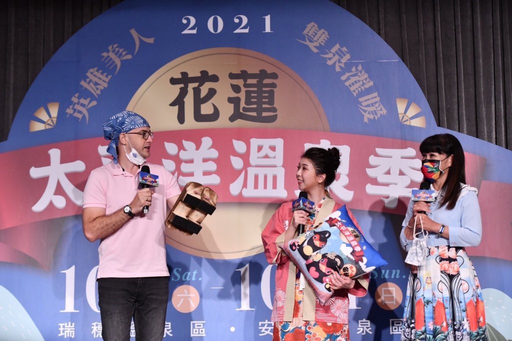 疫情趨緩之際,花蓮準備好了!全國場域最大且唯一雙展區的「花蓮太平洋溫泉季」即將於10/2-10/31登場,花蓮縣長徐榛蔚今(27)日於「2021太平洋溫泉季」記者會中邀請全國鄉親秋冬來花蓮瑞穗及安通溫泉區享受兩種泉質的好湯,並使用振興券及國旅券來花蓮消費及抽大獎;活動代言人林舒嬅、愛玩客台灣女婿吳鳳也在記者會中介紹兩大溫泉特色,並一同進行鏡開儀式,象徵2021花蓮太平洋溫泉季正式開跑,邀請大家一同感受活動展區光影的魅力。