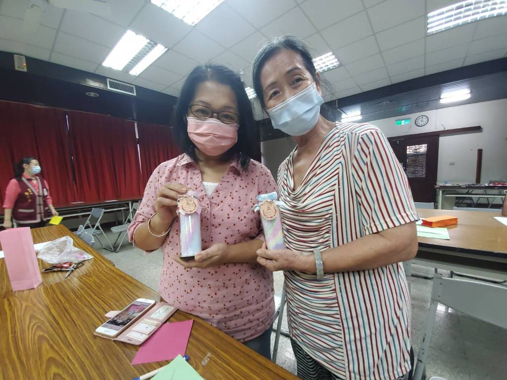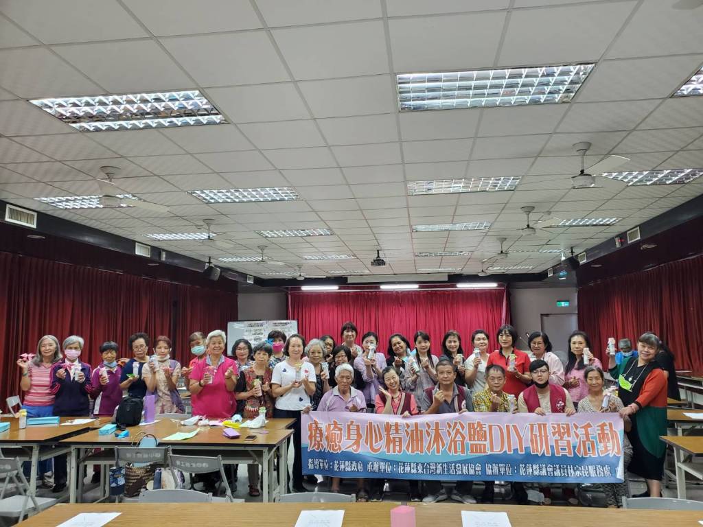 下午,東台灣新生活發展協會繼續舉辦「療癒身心精油沐浴鹽DIY研習活動」。由於工業發達,化學製品與生活形影不離,而添加了化學劑的清潔用品,不但對人體的皮膚是一種傷害,甚至有致癌的危機,而對大自然環境的影響,更是莫大的不可逆浩劫。由協會前理事長鄭岑蓉帶領著學員們,親自動手DIY製作精油沐浴鹽,簡單的材料不添加化學劑,不但環保又健康,鄭理事長也教大家製作包裝袋以及紙摺裝飾品,做好的精油沐浴鹽還能當作禮品贈送親友,自用餽贈兩相宜,學員們快樂的說:賺到了!