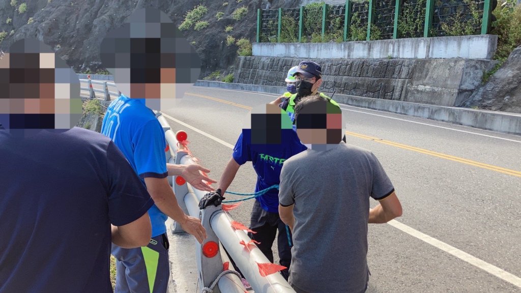今4日14時許,高姓民眾與楊姓民眾因欣賞海灘美景,故攀岩下去海灘,在欲攀岩返回陸地上時,2人因腳抽筋,無法動彈,於是在山壁下方呼喊救命,為路人發現後報警請求協助,經由警消人員以繩索方式救援後,約15時許安全將2名遊客救至台九丁線上馬路。