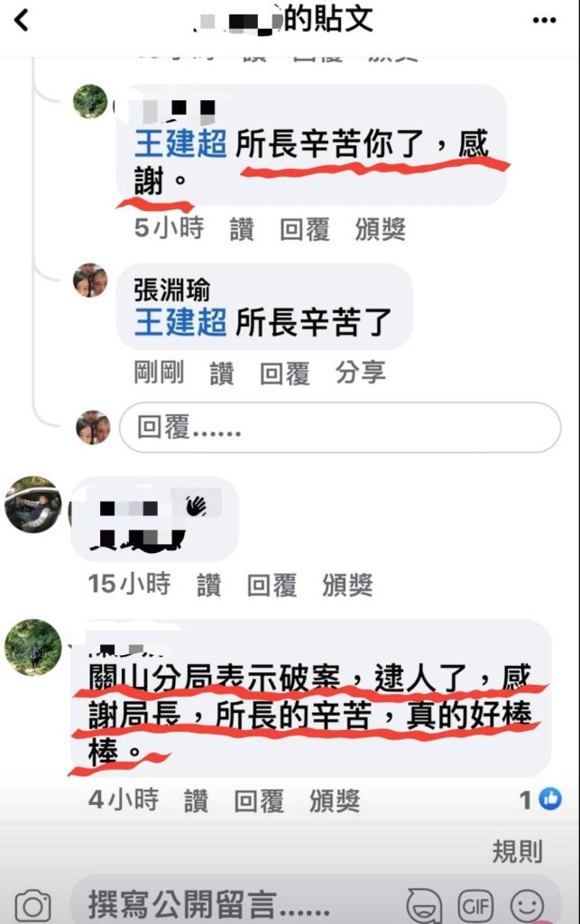 關山警察分局表示,感謝各位民代與民眾對於警察的肯定與支持,除暴安良為警察責無旁貸的職責,且法治社會仍須按照法律程序偵辦,以維程序正義;於此再次呼籲,民眾若發現可疑人事物,請發揮守望相助精神,撥打110或是當地分駐(派出)所報案,警察將儘速抵達,以維民眾生命財產安全。