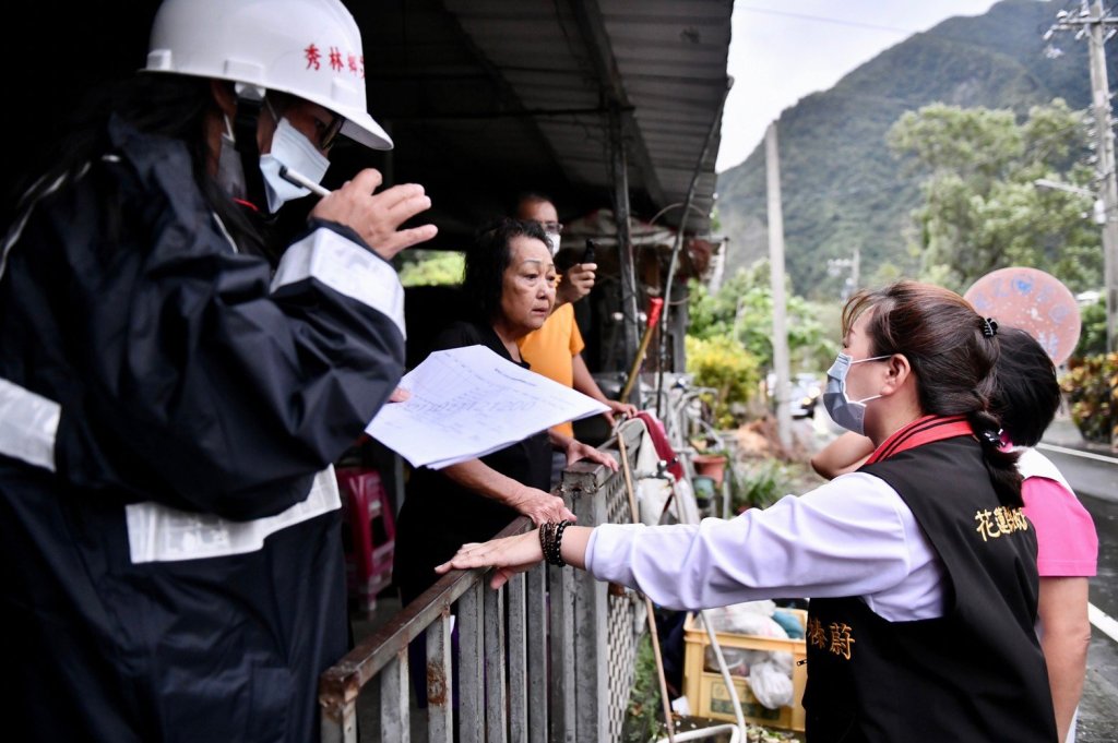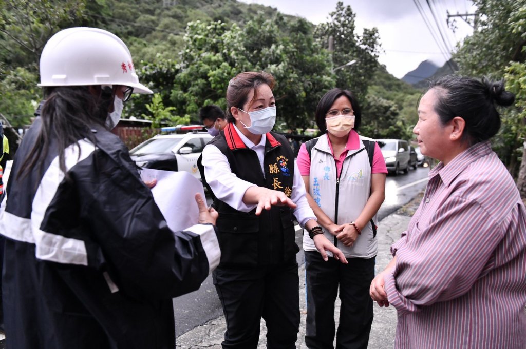 縣長徐榛蔚今(11)日下午在秀林鄉長王玫瑰陪同下,前往銅門村向潛勢區域逐戶宣導撤離,提醒村民配合撤離,避免可能的災害帶來傷亡。