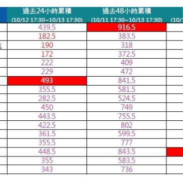 記者 謝廷瑋/綜合報導 受圓規颱外圍環流挾帶強勁豪雨狂襲,於10月11日起一連三天雷雨狂炸花蓮縣,累積雨量高達 … More 豪雨狂炸花蓮三天雨量破千毫米徐縣長呼籲鄉親不可掉以輕心