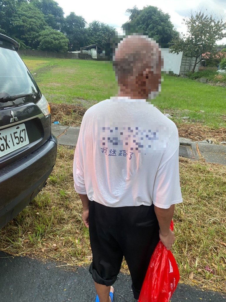 日前下午4時50分許,花蓮縣警察局新城分局加灣派出所警員戴昱有巡邏行經台9線175公里處北上車道,看見一名年邁的老先生行走於外車道上,戴員見狀立即將巡邏車停於路旁下車關心老先生,詢問其姓名、住址及家人等資訊,但該名老先生言詞反覆不定,僅知道自己的姓名、出生年月日,居住地及身分證字號都回答不出來,只一直表示其住板橋來鳳林找家人,且把錢給花完了,現在要走路回板橋,員警立即安撫老先生的情緒,隨即使用M-Police警用電腦人臉辨識系查詢,很快的比對出其年籍資料,並發現老先生衣服背後寫著「我迷路了。」及聯絡方式,員警立即撥打電話聯繫家屬請他們至加灣派出所將老先生帶返家。