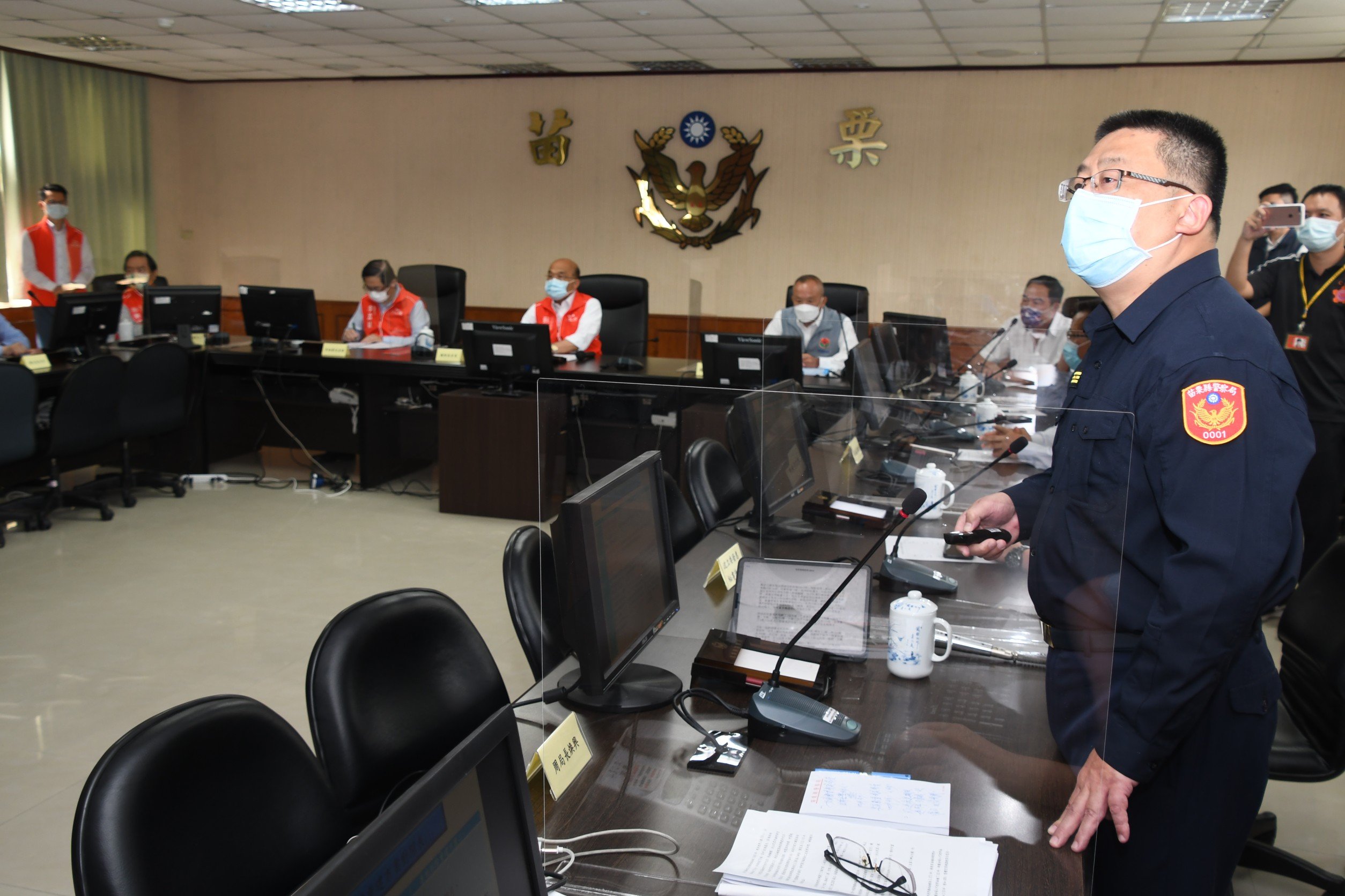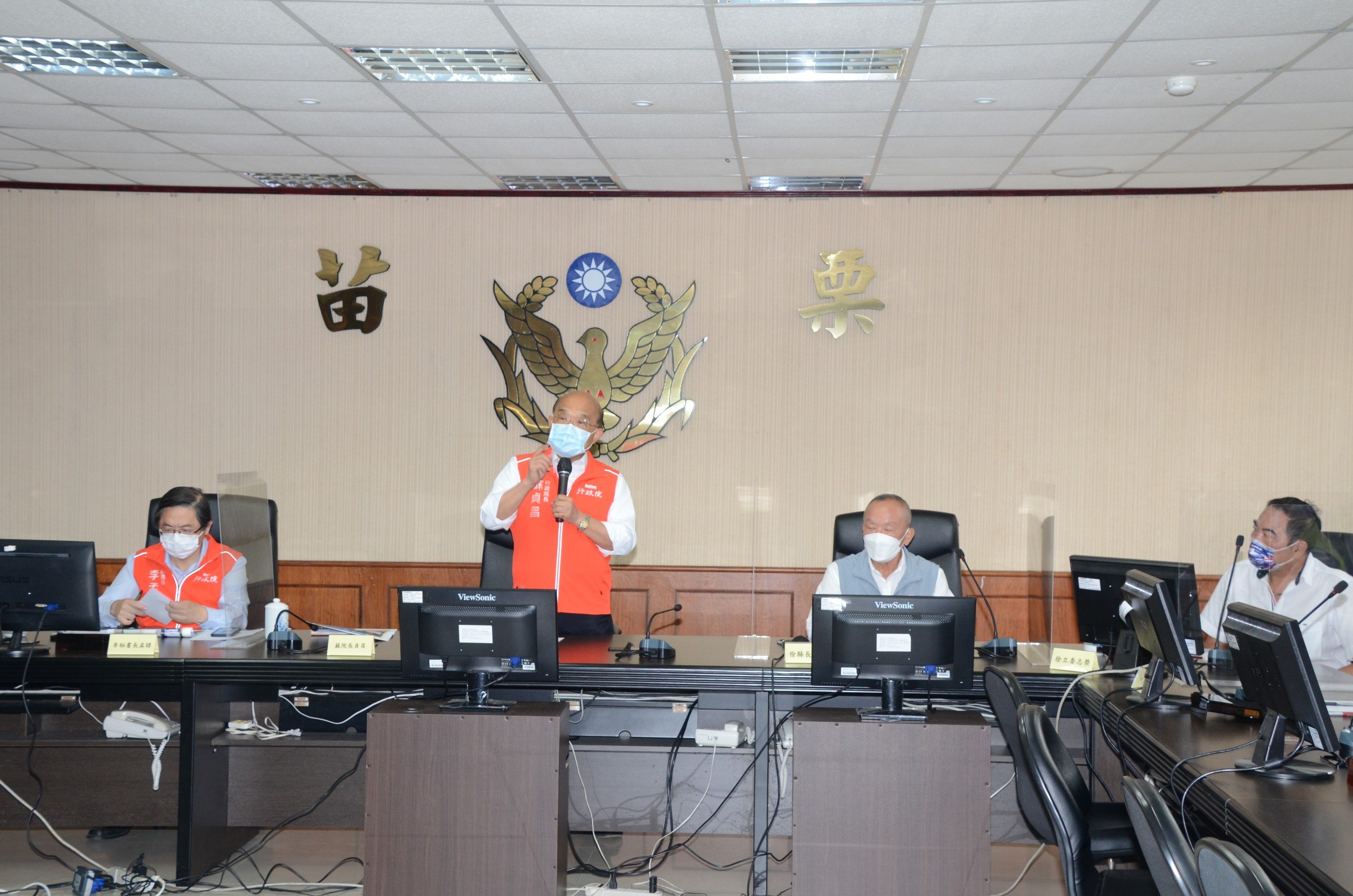 行政院長蘇貞昌今(18)日至苗栗縣警察局聽取警察局原地重建規劃簡報,並由秘書長李孟諺、政務委員羅秉成、政務顧問徐定禎、中部聯合服務中心副執行長何明杰、內政部政務次長陳宗彥、警政署副署長劉柏良陪同,此一地方盛事,縣長徐耀昌、立委徐志榮、議長鍾東錦及議員羅貴星、徐筱菁等人亦到場關注,由苗栗縣警察局局長周煥興報告,說明局本部主體行政大樓自民國58年興建至今,礙於經費不足情形下,各棟建築物於71年至84年間多次興建,以致建物間有銜接之問題,各棟建物排列雜亂無章,初步規劃原地重建所需經費為11億4,219萬元,現行規定補助上限為5億元,因此苗栗縣政府需自籌6億4,219萬元,惟苗栗縣政府礙於財政窘迫致本案因自籌財源金額龐鉅,實非縣府所能負擔,期望能爭取整體拆除經費重建,方符警政現代化需求且能配合城市整體嶄新風貌發展及規劃。