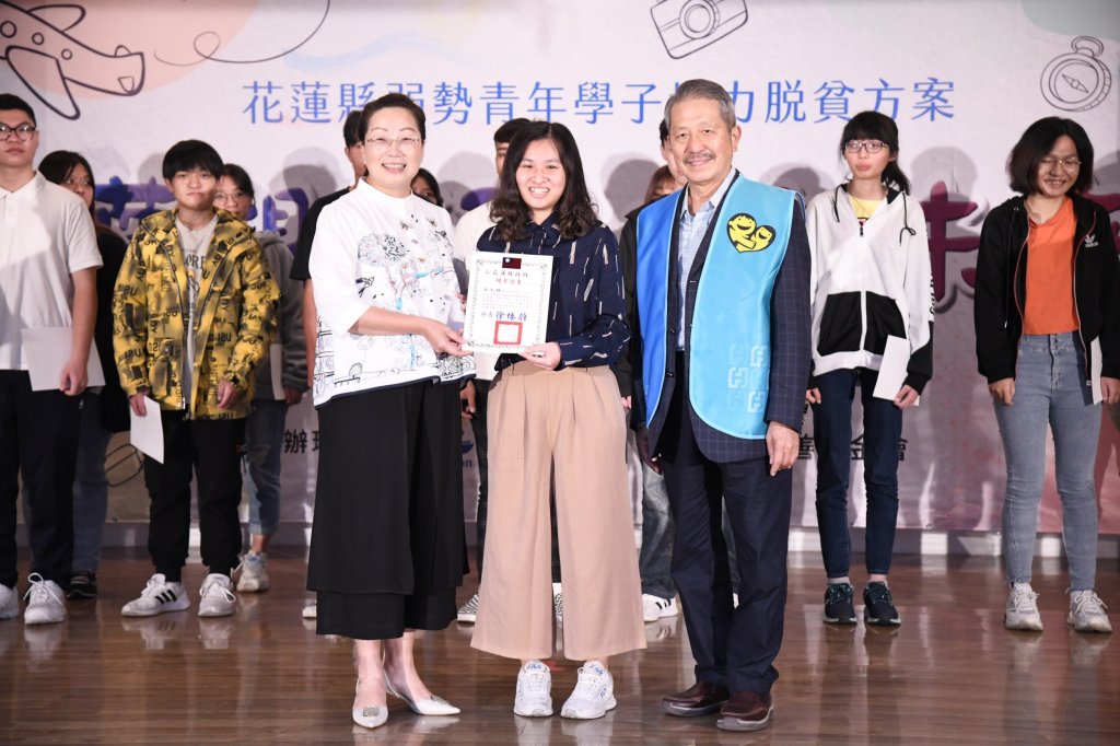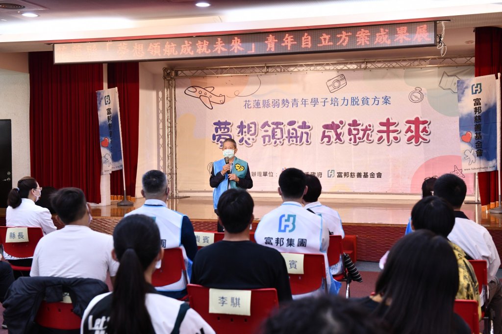 花蓮縣政府為協助弱勢青年學子翻轉貧窮困境,自107年10月起與富邦慈善基金會聯手推動「夢想領航。成就未來」弱勢青年學子培力脫貧方案,今(24)日於縣府大禮堂舉辦結業活動及成果展,三年來有23位高中生及大學生堅持努力到最後,共累積317萬元儲蓄款。縣長徐榛蔚感謝富邦慈善基金會協助培養孩子的理財觀,更勉勵孩子們持續保有儲蓄好習慣,保障自我人生。