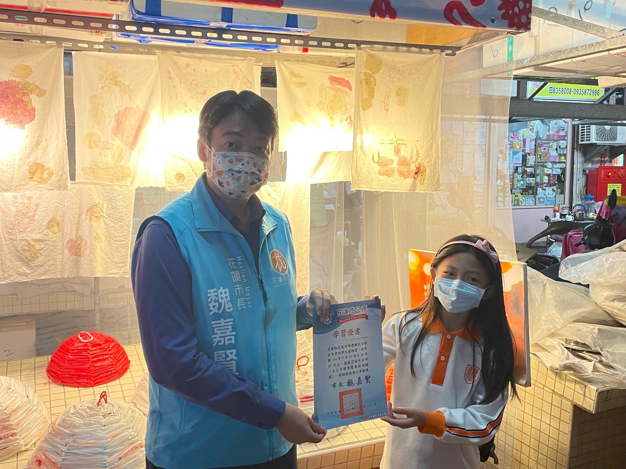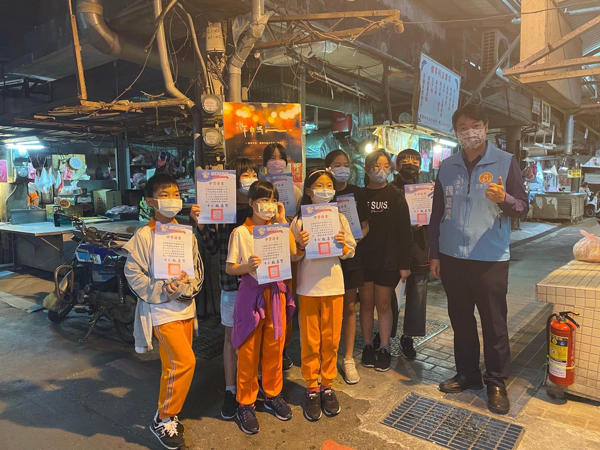 為了讓小朋友更深入了解傳統市場,花蓮市公所與明禮國小合作,帶領8名小學生上復興市場觀察,讓小朋友從不同角度體驗市場全貌,小朋友今天前往市場擔任小小市場導覽員,展現學習成果,市長魏嘉賢頒發結業證書,同時對於小朋友的表現都豎起拇指,期望小朋友都能愛上傳統市場,帶著父母一起上菜市場。
