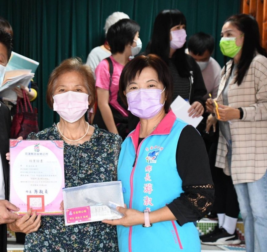 花蓮縣吉安鄉公所延伸母語傳承,特辦理「110年度原住民阿美族語中高級認證」研習,為期一個月的課程,今(30)日上午於阿美族文物館舉行結業典禮,鄉長游淑貞親自頒發結業證書及全勤獎,花蓮縣政府文化局長吳勁毅及政風處長何定偉亦到場肯定每位學員努力向上的精神,更與學員們用母語合唱「我們都是一家人」,透過歌謠加深語言學習記憶,並祝福大家金榜題名,成為鄉內族語發揚傳承的部落種子。