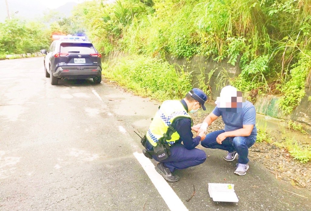 豐濱分駐所警員張育誠日前擔服山域訪查勤務,見民眾右手手腕擦傷、血流不止,員警見該民手握葉片欲止血,經詢問得知,該民眾因在山上種植玉米及地瓜菜等農作物,欲上山巡視農作物有無遭猴子破壞,因看見猴子正在附近,為驅趕離開,不慎踩到濕泥而滑倒,員警眼見在深山內若不立即處理傷口,恐怕傷口會感染,故返回車上取醫療箱立即協助民眾包紮傷口,並駕車載至就近醫院治療,民眾表示非常感謝警方的協助,該民對於警方熱心幫助載送至醫院就醫之舉,深表感謝。
