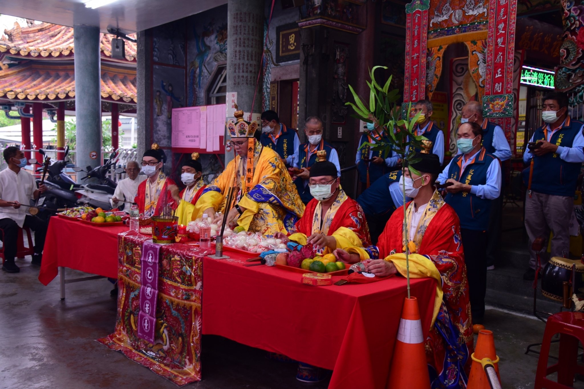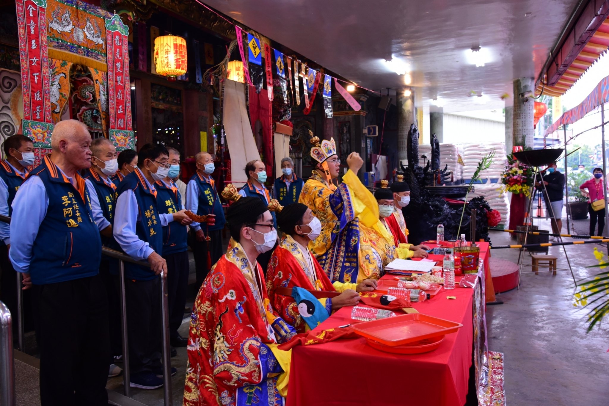 魏嘉賢市長抵達聖天宮後,先特香向眾神祗敬拜以表敬意,之後頒發感謝狀,由賴雲潤代表廟方接受。100份生活物資由社勞課人員提領暫放實物銀行倉庫,至於2100公斤的白米則是以提貨券的方式,讓市公所可以提領最新鮮的米糧轉贈給有需要的家庭。
