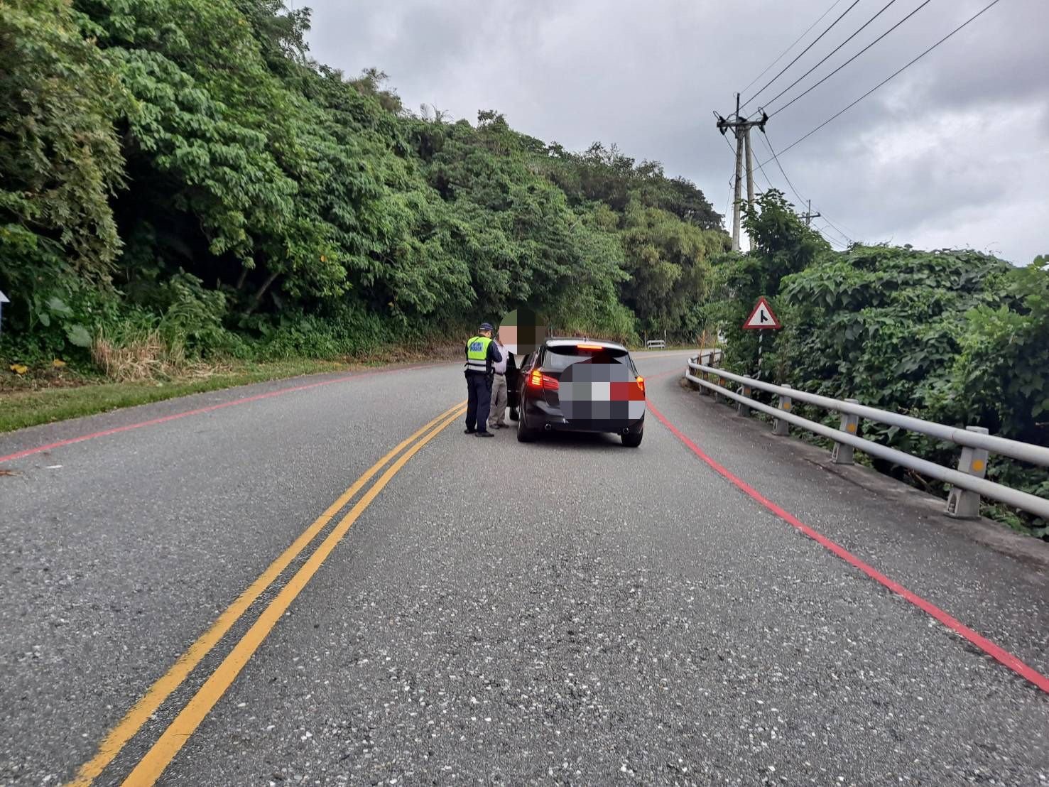 鳳林警分局新社派出所 所長曾文志、副所長張小慶於日前11月8日擔服14-16時巡邏勤務,於14時30分許在台11線39.5公里處北上車道處,見1部自小客車停駐於該路段車道中間,並發現駕駛座車門呈現開啟狀態,所長等2人見狀後為防止現場人車發生危害,立即將巡邏車停在該車輛後方,並開啟巡邏燈警示來往車輛。