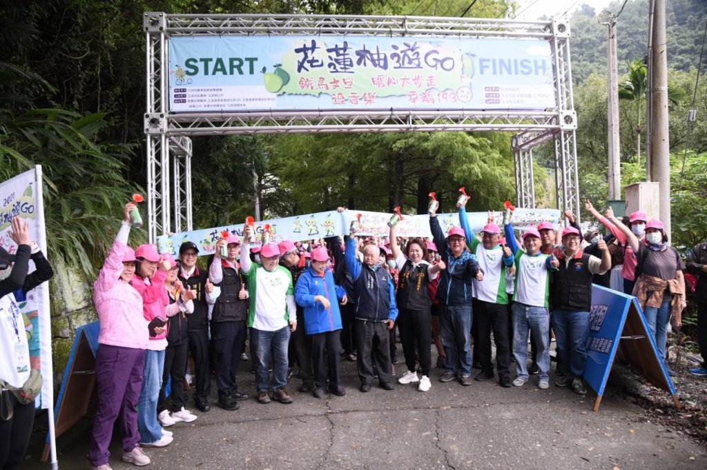 花蓮縣政府今110年的壓軸愛戀健走活動「2021花蓮柚遊暖心大步走幸福193」,今(14)日於玉里鎮東豐拾穗農場盛大展開,吸引超過千位鄉親參與,縣長徐榛蔚與花蓮縣議會副議長潘月霞、黃玲蘭及縣府各局處首長共同活絡筋骨後,並與鄉親們漫步景致優美的193步道中,享受清幽早晨和雨後新鮮空氣的洗禮。