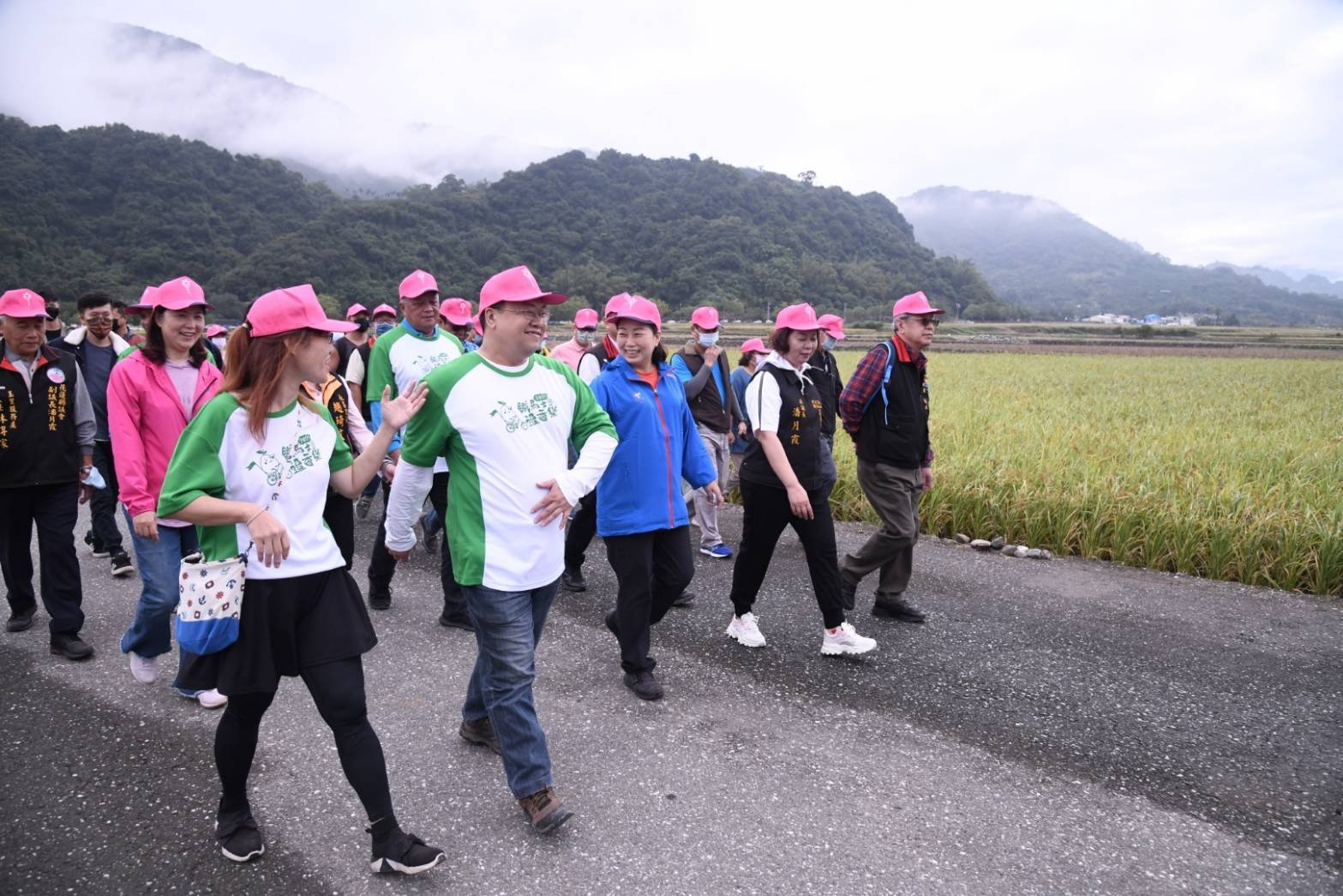 健走活動由花蓮縣政府農業處、社會處、花蓮縣文化局,結合玉里鎮公所、玉溪農會及大禹社區團體等共同舉辦。徐縣長率領縣府局處首長、同仁,和鄉親們一同出發,經過金黃稻穗區沿著秀姑巒溪堤防折返東豐拾穗廣場,全程約5公里,預計1小時30分走完。沿途可飽覽南區著名的193線金黃稻浪、鄉村風景、田園風光,還能欣賞著名的縱谷風光,吸收負離子,是一趟非常好的低碳健走活動。