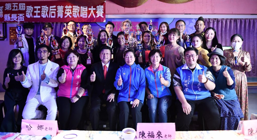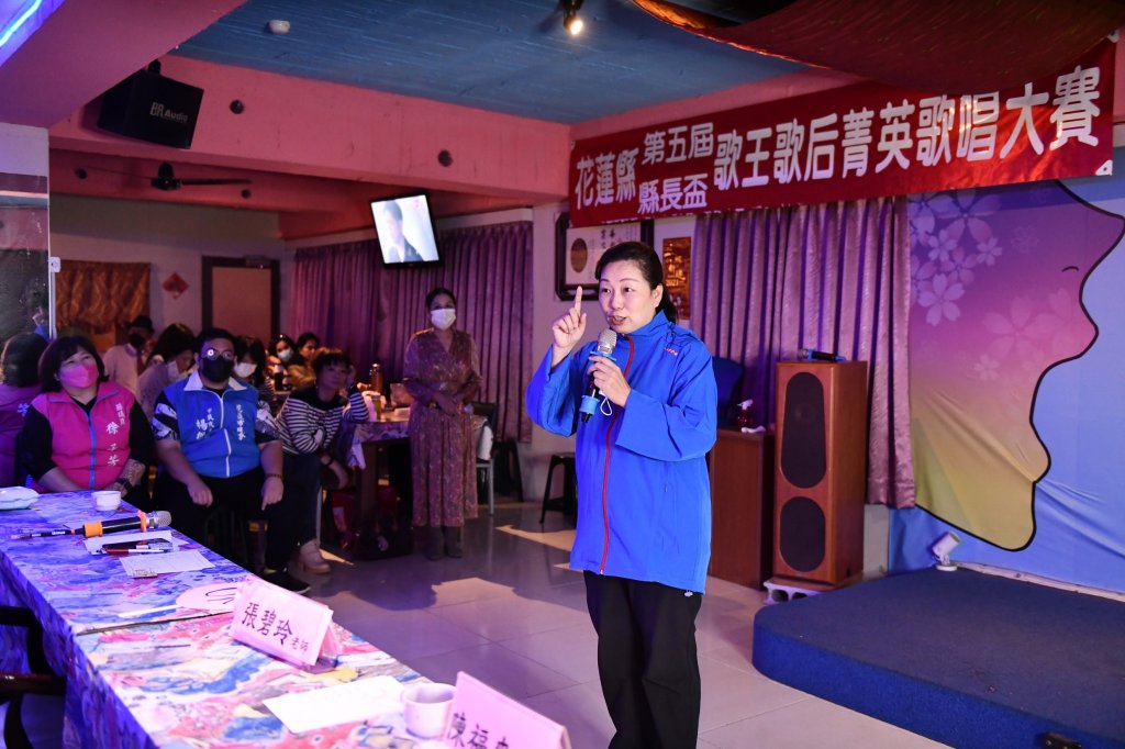 花蓮縣創意歌舞協會於11月6日至11月14日舉辦「110年度第五屆縣長盃歌唱大賽」,昨(14)日晚間進行決賽,長青組曾秀娥、社會組謝夢萍最終脫穎而出,拿下冠軍,縣長徐榛蔚偕立法委員傅崐萁出席表揚獲獎歌后,更鼓勵花蓮在地有實力的鄉親勇敢爭取表現機會,站上舞臺讓自己發光發熱,展現花蓮最優質的聲音。