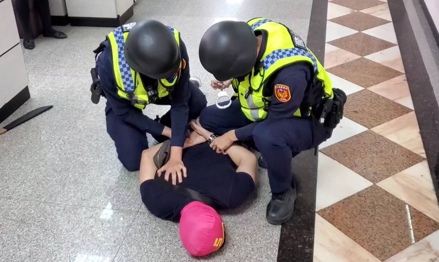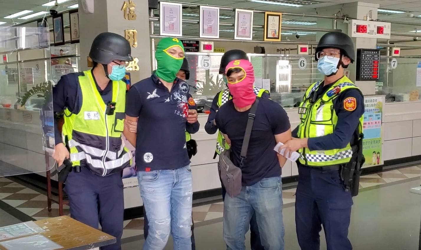 假意拿起抽屜內的現金,趁空檔機警的按下「警急通報鈕」報案!關山派出所接獲勤務指揮中心通報後,並由偵查隊隊長黃崑明、偵查隊隊員及關山派出所員警等警力趕赴現場,兩名搶匪不敵手持防彈盾牌、頭戴防彈頭盔及裝備精良的優勢警力,遂依警方指示棄槍高舉雙手投降就逮。隨後警方依SOP程序加銬搜身後,帶回依法偵辦!整場演練行員與警員搭配迅速確實,圓滿成功!
