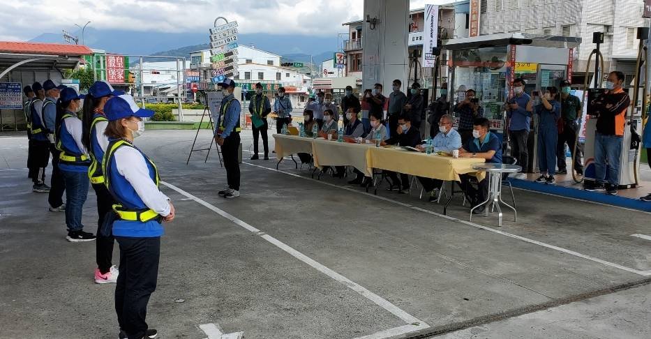 年關將屆,關山鎮農會與池上中油加油站為提升行員與員工警覺心,特與關山警察分局偵查隊、關山派出所及池上分駐所,共同於今(16)日10時及14時,實施「金融機構防搶演練」,藉此提升金融機構行員(員工)警覺心及熟悉通報SOP程序;演練一開始由兩名偵查隊偵查佐所扮演的搶匪,戴著全罩式頭罩,分持手槍及開山刀進入農會信用部大廳,高舉手槍大喊搶劫,這時行員拿著額溫槍及酒精說「先生您好,請遵守防疫規定,量體溫消毒」,兩名搶匪放下刀槍配合,以符合COVID-19(新冠肺炎)第二級警戒的防疫規定;搶匪很快回神恢復「搶劫模式」,但此時躲在辦公桌下的行員,