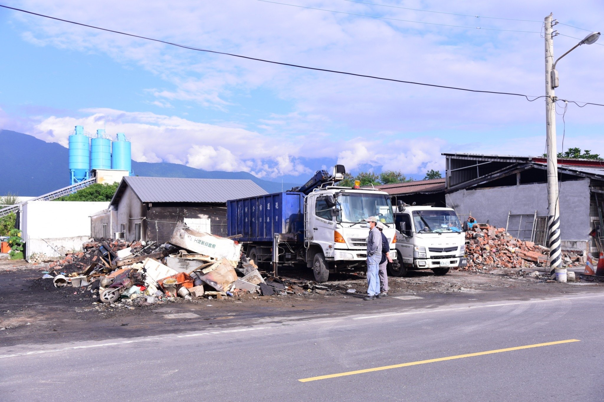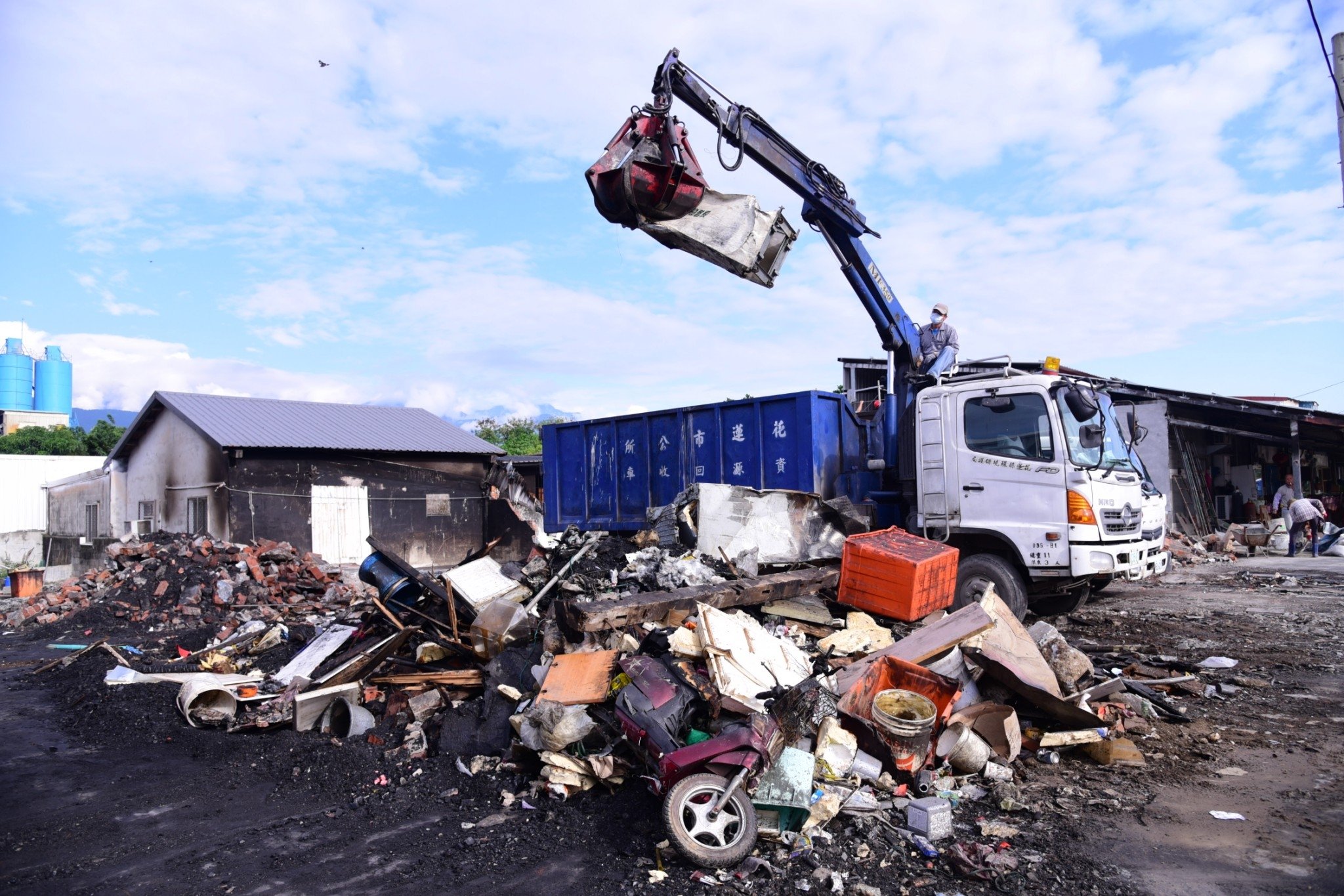 花蓮市公所繼上週之後,今(17)日再度派出人力及車輛協助華東路火災戶清運家園,其中包括配合花蓮縣環保局協助清運營建廢棄物,總計清運十多個車次。花蓮市長魏嘉賢到場關切並感謝清潔隊弟兄的辛勞,也期盼受災戶早日重建家園。
