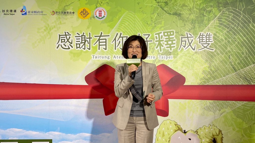 為推廣臺東在地農特產品鳳梨釋迦及部落旅遊,臺東縣政府攜手臺北捷運及原住民族委員會,今(17)日於中山捷運站辦理「臺東農特產品公益燈箱」記者會,快閃力推鳳梨釋迦及行銷臺東深度部落旅遊,同時也特別邀請臺東知名原住民歌手Suming舒米恩演出,活動現場傳遞滿滿在地特色的臺東味。