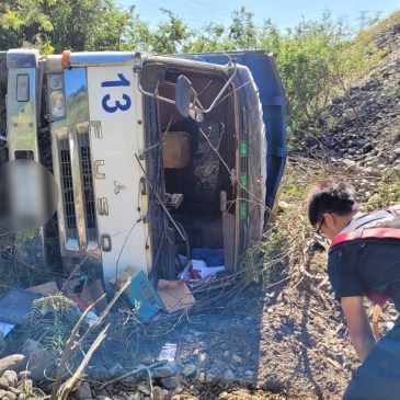 記者 謝廷瑋/大武報導 大武分局今(18)日上午10時48分許,獲報在大武鄉大武溪河道疏浚工地砂石堆置處,一輛 … More 臺東大武鄉大武溪河道疏浚工程一輛大型工程車翻覆