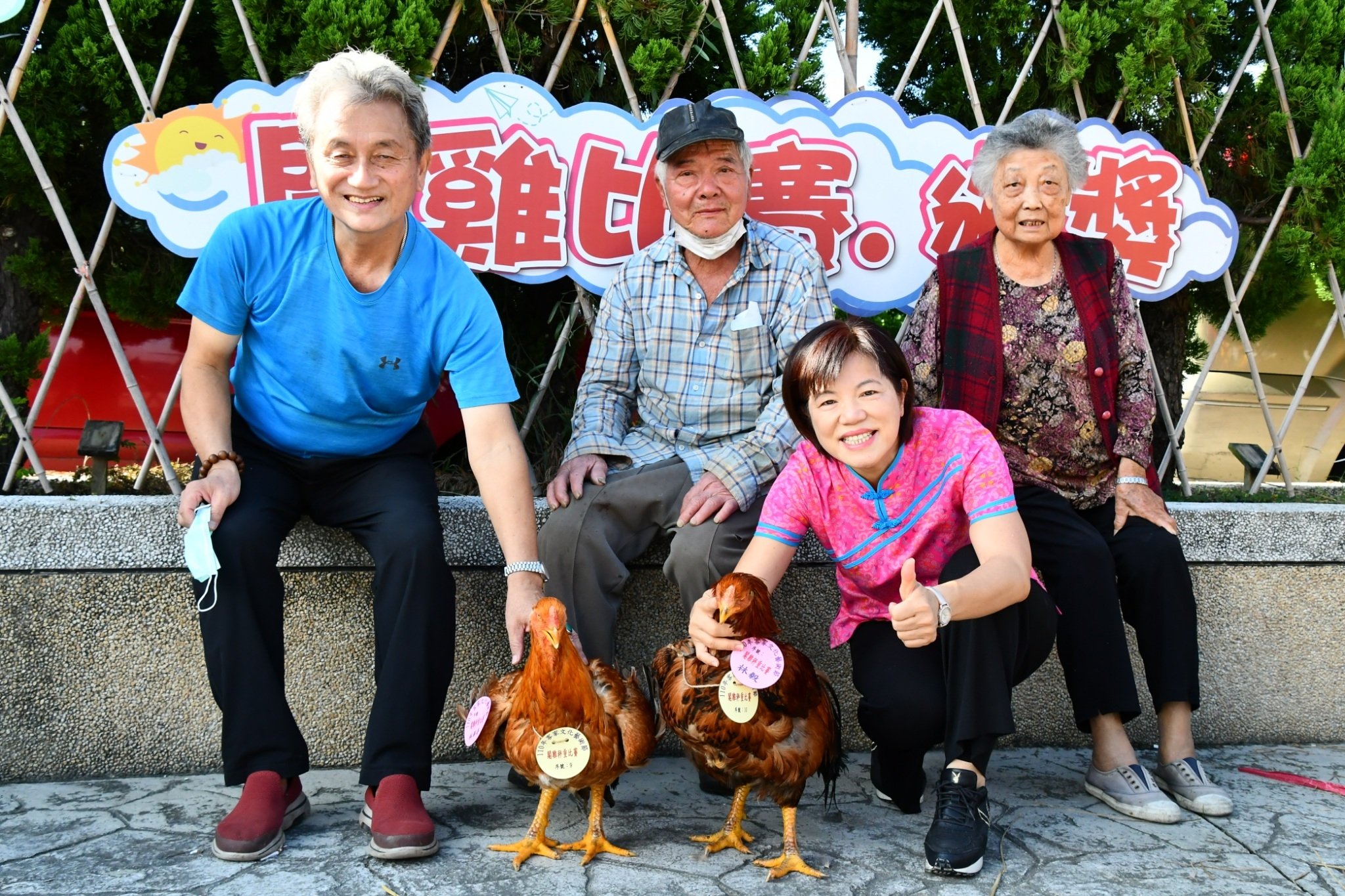 閹雞秤重比賽集結鄉內各路養雞達人,細心照料飼養超過六個月以上,賽果出爐後,飼主們將雞放於鄉公所特別搭建的圍籬之中,供眾人拍照觀賞,飼主們也以雞會友,互相交換養雞心得。奪冠後樂得笑呵呵的飼主表示,平常跟媳婦一起在家裡後院飼養,以餵食玉米等五穀雜糧為主,他覺得最重要的是把雞像家人一樣照顧、呵護,就能頭好壯壯、快快長大謝神恩。